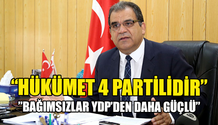“Hükümet 4 partiden oluşuyor. Yanlış bir şey mi söyledim. 3 bağımsız arkadaş birlikte hareket ediyor. Adı parti değil ama 3 arkadaşımız baştan beri destek verirken de şu anki desteklerinde de birlikte hareket ediyorlar. Dolayısıyla 3+1 eşittir 4 demek. Burada bir tuhaflık yok. 4 partili. Yani adı konmamış ama bağımsızlar daha güçlü. YDP’de 2 milletvekili var. Bağımsızlar 3 yani sayı olarak daha güçlü. DP’de 3 var, 2+1. Ama bağımsızlar da 3 tane homojen birlikte hareket eden arkadaşlarımız var. Çok sevdiğimiz 3 arkadaş. Dolayısıyla doğrudur 3 partili ama baktığınızda pratikte 4 partili. Söylemde bir yenilik yok bilinen bir şeydir”.