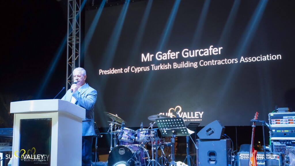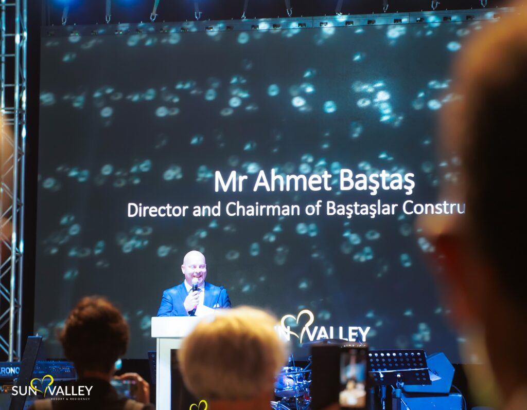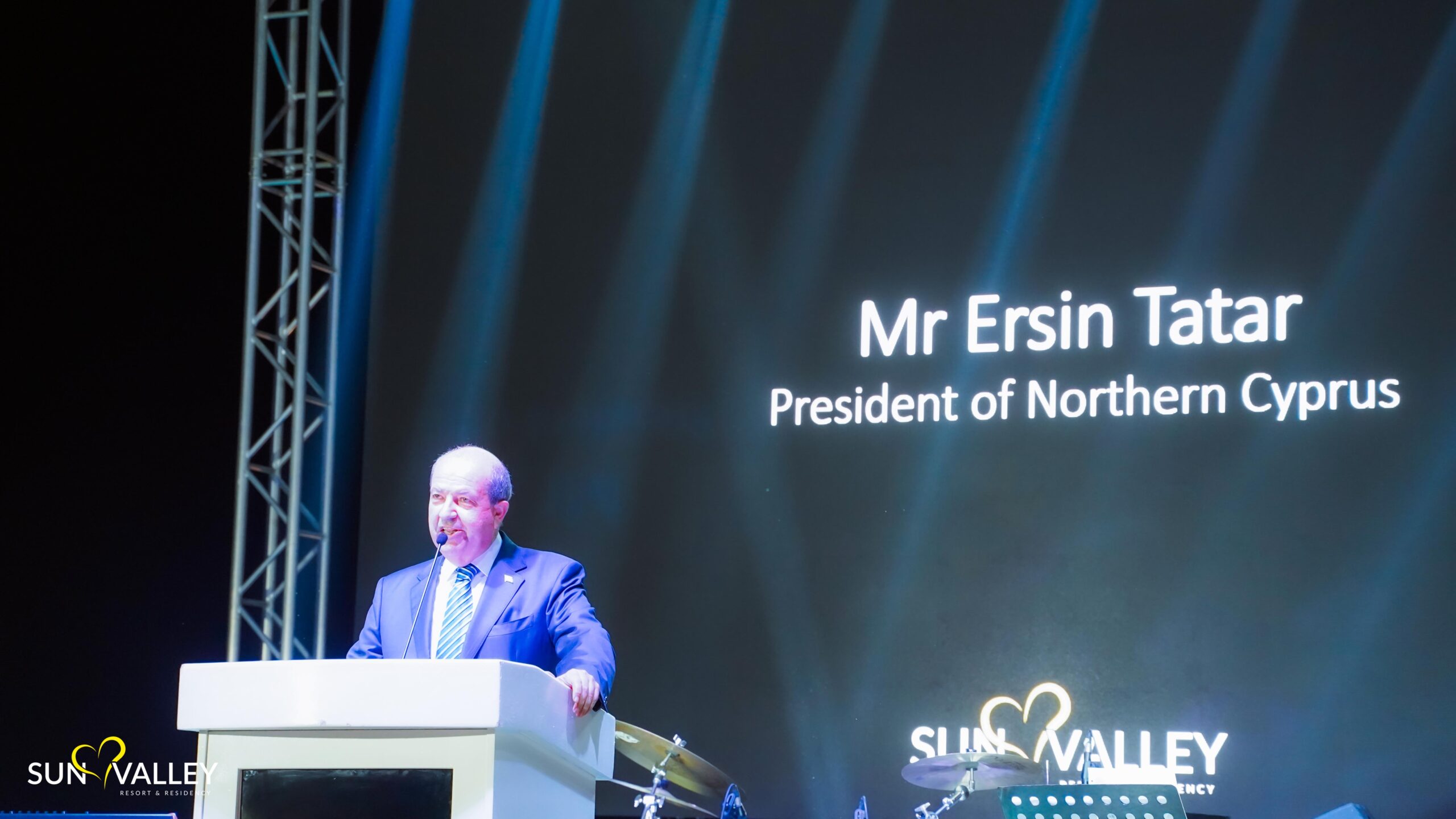 Cumhurbaşkanı Ersin Tatar konuşmasına tüm dünyaya bir mesaj vererek başladı. Bu mesajında KKTC’nin her zaman var olduğunu ve bu ülkede yatırımların her zaman devam edeceğini ve buna kimsenin engel olamayacağını belirtti. KKTC’ye ve bu muhteşem proje Sun Valley’ye yatırım yapan tüm yabancı müşterilerin ileride çok büyük kazançlar elde edeceğinin altını çizen Tatar, İnşaat sektörünün artık Turizm sektörü kadar önemli hale geldiğini ve bu sektörün daha fazla desteklenmesi gerektiğini belirtti. Görüşmelerle ilgili olarak da kendisi her zaman barıştan ve anlaşmadan yana olduğunu dile getirirken öz kaynakların her zaman paylaşılması gerektiğini ve ancak bu şartlarla ilerleyebilecekleri görüşünde olduğunu sözlerine ekledi. Tatar, son olarak geceye katılanlara, Baştaşlar İnşaat Şirketine yatırım yapanların her zaman şanslı olduğunu ve her zaman güvenebileceklerini dile getirdi.