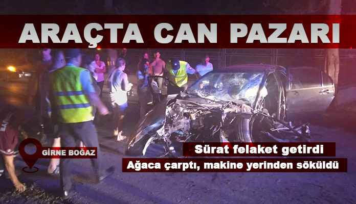 Eski Gönyeli-Girne Boğaz Anayolunda sabahın ilk saatlerinde meydana gelen feci kazada 23 yaşındaki Mete Ünal ağır yaralandı. Saat 03.00 raddelerinde Gonyeli’den eski Boğaz yoluna seyreden Ünal, aşırı süratli bir şekilde seyrederken, yönetimindeki aracın yoldan çıkması sonucu yol kenarındaki servi ağaçlarına çarparak durabildi.