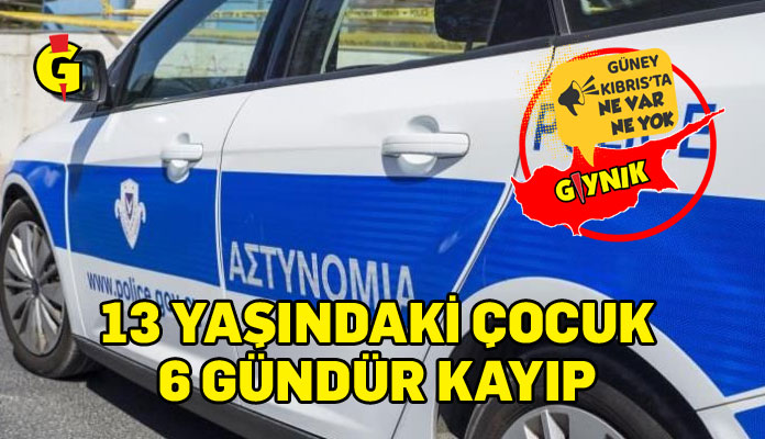 Güney Kıbrıs’ta Rum Sosyal Hizmetler Dairesi gözetiminde bulunan 13 yaşındaki Suriye uyruklu bir çocuğun 6 gündür kayıp olduğu, nerede olduğuna dair bir bilgi bulunmadığı bildirildi.