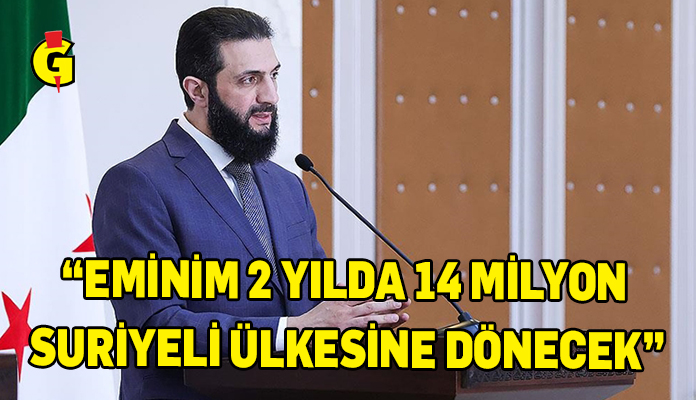 Şara, ülkeye dönüşlerin artacağına işaret ederek, “Eminim 2 yılda 14 milyon Suriyeli ülkesine dönecek. Geriye sadece 1 veya 1,5 milyon kalacak.” ifadesini kullandı.