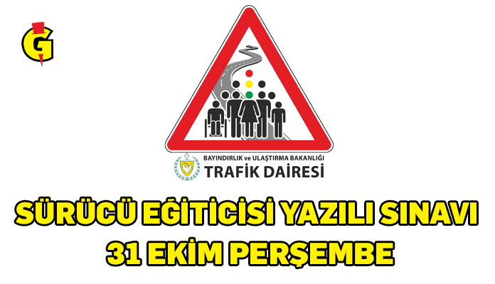 Bayındırlık ve Ulaştırma Bakanlığı, Trafik Dairesi Sürücü Eğiticisi Sınav Komisyonu, Sürücü Eğiticisi Yazılı Sınavı’nın 31 Ekim Perşembe günü yapılacağını açıkladı.