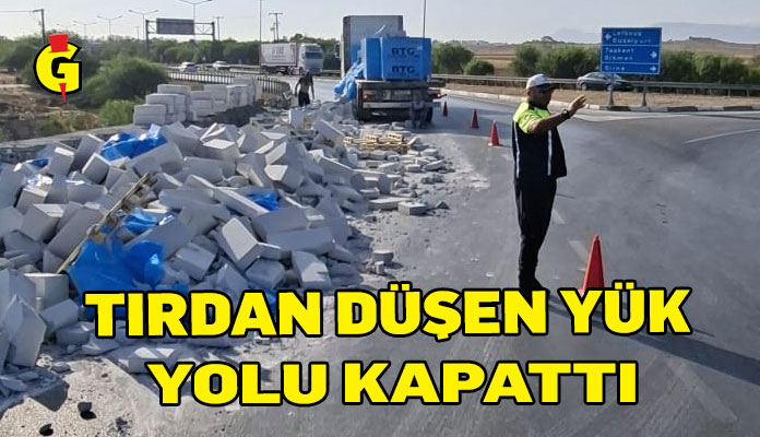 Gazimağusa-Lefkoşa anayolunun Halkbank Çemberi çıkışında Lefkoşa istikametine ilerleyen bir tırın taşıdığı gaz beton tuğlalar, sol şeride devrildi.