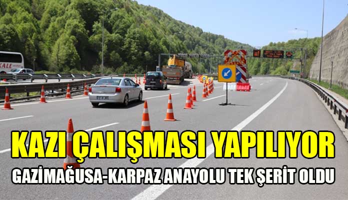Kazı çalışmaları nedeniyle Gazimağusa-Karpaz Anayolu trafik akışı her iki yönden de tek şerit olarak veriliyor.