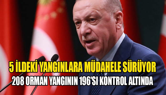 Erdoğan yaptığı açıklamada, 208 orman yangının 196’sının kontrol altına alındığını aktarırken, orman yangıları ile mücadele için tüm imkanlarını seferber ettiğini, karadan ve havadan müdahale araç sayılarını artırdıklarını belirtti.