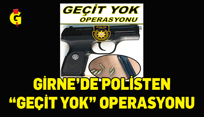 Girne’de bugün, saat 12.30 sıralarında, Sedat Simavi Caddesi üzerinde, Lefkoşa Polis Müdürlüğü ve Girne Polis Müdürlüğü'ne bağlı Cürümleri Önleme Şube Amirlikleri ekipleri tarafından koordineli bir şekilde gerçekleştirilen Geçit Yok Operasyonu kapsamında, Ü.S.(E-35)'nin tasarrufunda; bir adet tabanca ve tabancaya ait şarjör ile 6 adet canlı mermi ele geçirildi