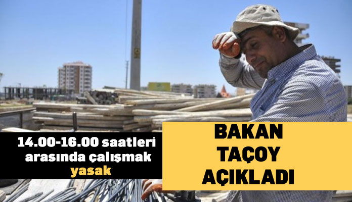 Bakan Taçoy, “Ağustos ayıyla birlikte güneş altında 14.00-16.00 saatleri arasında çalışmak yasak.” dedi.