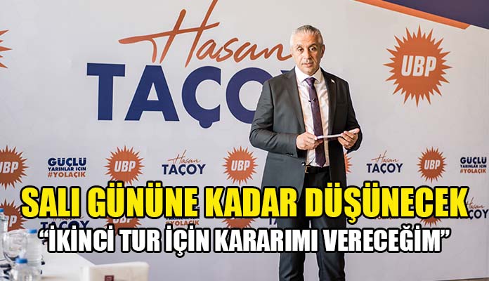 Ulusal Birlik Partisi’nde genel başkanlık yarışında 2 bin 102 oy alarak kurultay yarışının ilk turunu Faiz Sucuoğlu’nun ardında ikinci sırada tamamlayan Hasan Taçoy, gece sonu yaptığı açıklamada ikinci tura katılıp katılmama kararını en geç Salı günü vereceğini ifade etti.