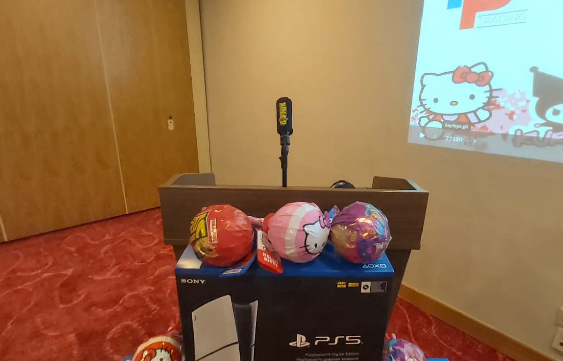 P&P Trading’in markası Lolliboni’nin “Büyük Lolipop Sürpriz Kutu” ürününden çıkan oyuncaklar ve sürprizlerin yanı sıra, 1’den 15’e kadar numaralı lisanslı tasoları eksiksiz toplayanlara çekilişsiz kurasız PlayStation 5 hediye ediliyor .. Kazananlara Playstation 5'ler 22 Temmuz 2025’te Lefkoşa Concorde Tower Otel’de düzenlenen etkinlikte teslim edildi.
