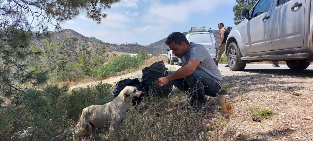 Taşkent Doğa Park ekipleri, Kantara’da devam eden yangın içerisinden bir anne köpek ve yavrusunu kurtardı.