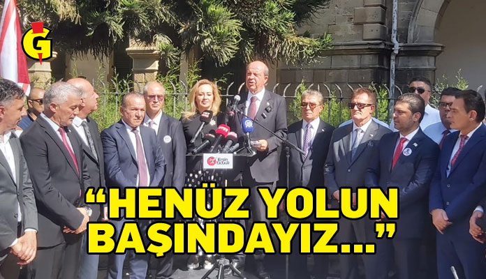 Cumhurbaşkanı Tatar, buradan başlayan kortej yürüyüşü sonrası Mahkemeler önünde basın toplantısı düzenledi.