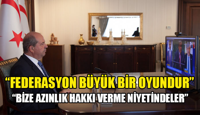 Cumhurbaşkanı Tatar, tek egemenliğin olduğu federasyonun, Kıbrıslı Türkleri azınlığa düşürerek, Türkiye’yi adadan uzaklaştıracak büyük bir oyun ve bencil bir siyasetin ürünü olduğunu ve birkaç Anayasa değişikliğiyle “federasyon” kisvesi altında Rum devletine dönüşen Kıbrıs Cumhuriyeti’nin devamının Rum tarafınca arzu edildiğinin altını çizdi.