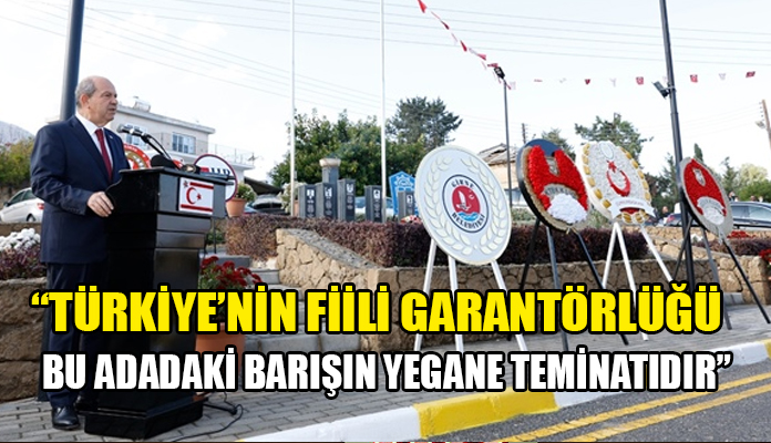 “Kıbrıs’ta iki ayrı halk vardır ve iki ayrı halkın egemen eşitliği ve Türkiye Cumhuriyeti’nin desteğiyle bir anlaşma olacaksa olacaktır” diyen Tatar, bütün sehitlere Allah’tan rahmet dileyerek sözlerine son verdi.