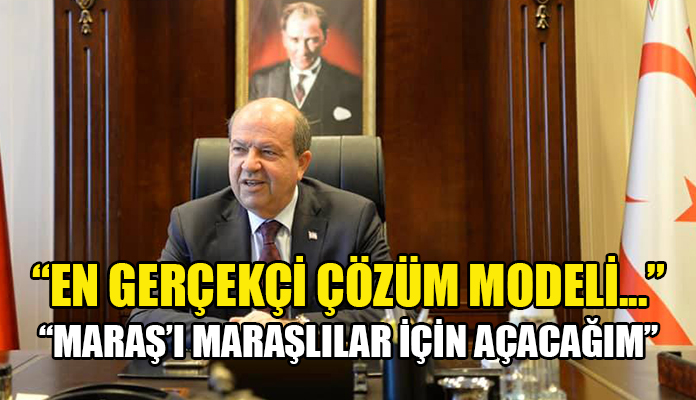 “Kıbrıs’ta gerçek, halkımın oyları ile tercih ettiği iki devlet çözümüdür. Dış güçler kabul etse de etmese de. Gelecekte Kıbrıs’taki iki egemen devlet arasındaki ilişki bu gerçeğin uluslararası toplum tarafından –dünyanın başka yerlerinde yaptığı gibi- tanımasına bağlı olacak. O zamana kadar çabalarımızı KKTC’nin içte ve dışta kalkındırmaya yoğunlaştırıyoruz. Kapalı Maraş’ın uluslararası hukuk zemininde ve Avrupa İnsan Hakları Mahkemesi’nin belirlediği şekilde Taşınmaz Mal Komisyonu aracılığıyla sakinlerine açılması da bu çabaların önemli bir parçasıdır. Detaylara girmek istemiyorum, sadece, kentin turizm destinasyonu olarak uluslararası ününü ve cazibesini geri kazanması yolunun açılması için orada başladığımıza devam edeceğimizi söylemek istiyorum.”