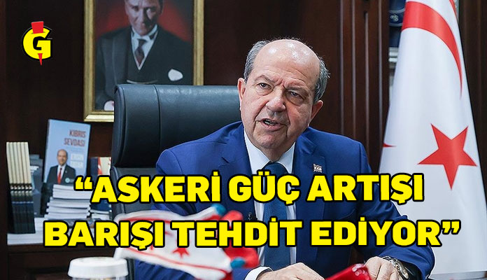 Cumhurbaşkanı Ersin Tatar, bölgedeki gelişmelerin de Güney Kıbrıs’taki silahlanmanın da tehlikeli boyuta ulaştığını kaydetti. Tatar, “Güney Kıbrıs artık teslim oldu. İngiliz üsleri, ABD, Fransa ve artık İsrail her türlü askeri donanımıyla burada” dedi.