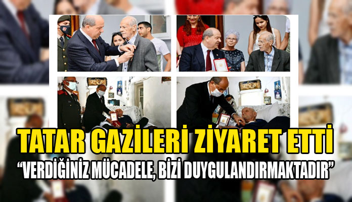 Cumhurbaşkanı Ersin Tatar, Güvenlik Kuvvetleri Komutanı Tümgeneral Zorlu Topaloğlu ve Kıbrıs TMT Mücahitler Derneği Başkanı Yılmaz Bora ile birlikte Kıbrıs Türk halkının milli mücadelesine yapmış oldukları üstün hizmetler nedeniyle Görneç ve Gazimağusa bölgesinde ikamet eden ve sağlık problemi yaşayan gazileri ziyaret ederek şeref madalyası takdim etti.