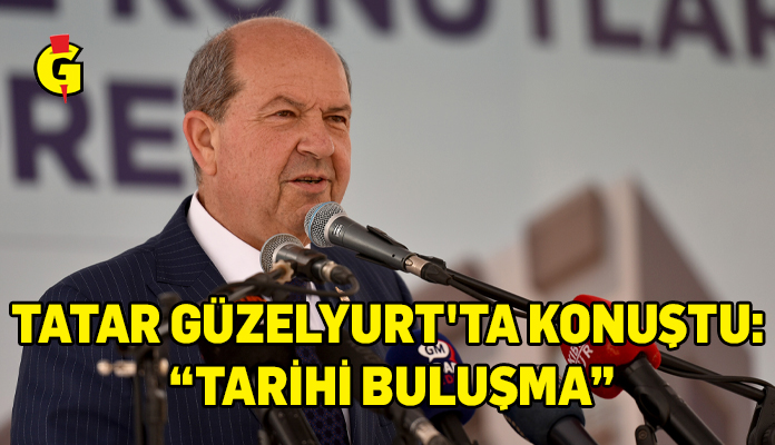 Cumhurbaşkanı Tatar, Güzelyurt Yeni Sosyal Konutları’nın temel atma töreninde konuştu. Tatar konuşmasına, tören sırasında rahatsızlanan İçişleri Bakanlığı Plan-Proje Müdürü Emirali Çobanoğlu’na geçmiş olsun dileklerini ileterek, başladı. Bugünkü buluşmayı “tarihi” olarak niteleyen Tatar, projede emeği geçenlere teşekkür etti.