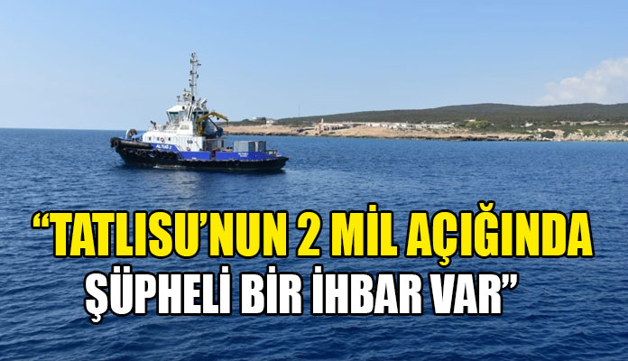 Başbakanlık Müsteşarı ve Kriz Komitesi Başkanı Hüseyin Amcaoğlu, Tatlısu’nun 2 mil açığında uydudan saptanan renk değişimi nedeniyle “şüpheli bir ihbar” olduğunu ve Kıyı Emniyeti’ne ait römorkörün yerinde tespit için söz konusu alana gitmek üzere hareket ettiğini açıkladı.