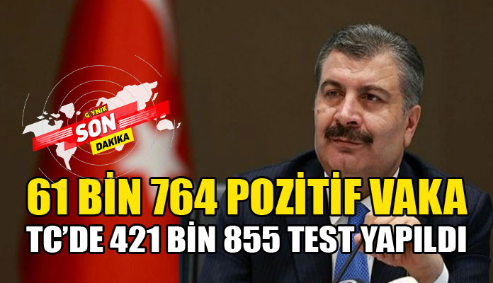 Türkiye’de son 24 saatte 421 bin 855 Covid-19 testi yapıldı, 61 bin 764 kişinin testi pozitif çıktı, 221 kişi yaşamını yitirdi.
