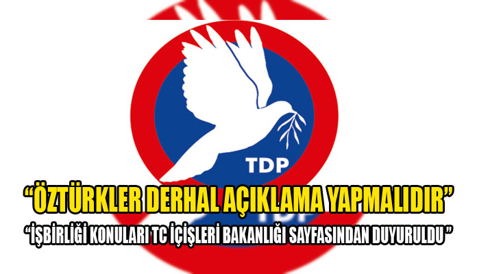 TDP'den yapılan açıklamada, TC İçişleri Bakanı Süleyman Soylu ile KKTC İçişleri Bakanı Ziya Öztürkler arasında görüşülen, Güvenlik ve Kolluk Kuvvet İş Birliği, Kent Güvenlik Yönetim Sistemi (KGYS), Sınır Kapılarında Güvenlik Artırıcı Çalışmalar, Terör, Uyuşturucu, Siber Suçlar ve Sanal Kumarla Mücadele, Göç ve Afet Yönetimi alanlarında İş Birliği konularının Ziya Öztürkler tarafından derhal açıklanması gerektiği vurgulandı.