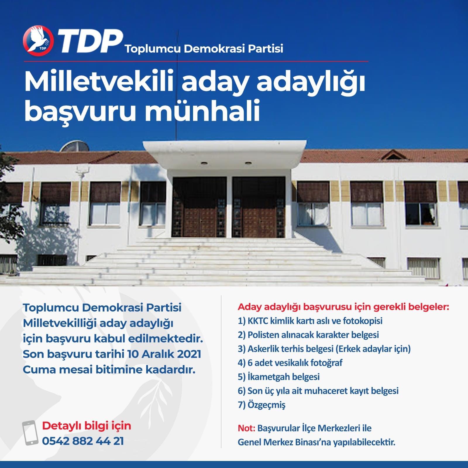 Toplumcu Demokrasi Partisi (TDP) Milletvekilliği aday adaylığı için başvuru süreci bugün başladı.