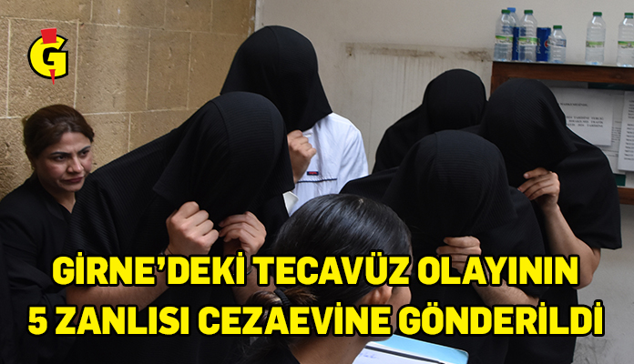 Girne’de eğlence mekanında tanıştıkları 21 yaşındaki I.G. isimli kızı kaldıkları eve götürerek, sırayla tecavüz ettikleri iddia edilen Yusuf Atan, İbrahim Arzakçı, Şehmus Kaya, Zülküf Kaya ve Baver Yaşar teminat talebiyle mahkemeye çıkarılarak, yargılanmak üzere 35 günü aşmayacak süreyle cezaevine gönderildi.
