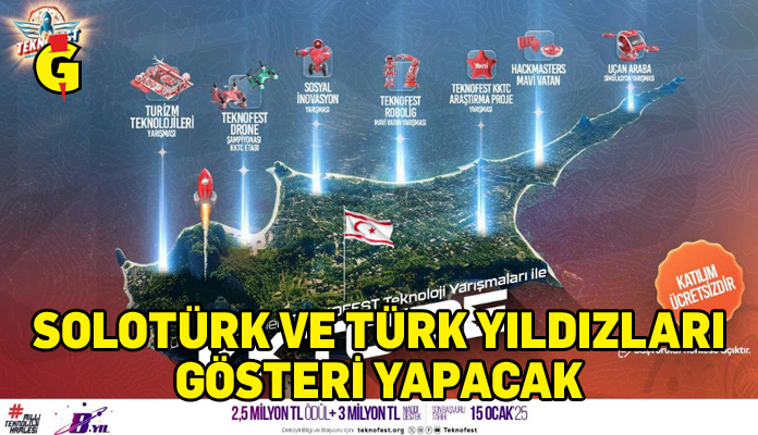TEKNOFEST’ten yapılan açıklamaya göre, katılımın ücretsiz olduğu TEKNOFEST KKTC öncesi, SOLOTÜRK Gösteri Ekibi ve Türk Yıldızları Akrobasi Timi, yarın saat 12.00’de KKTC üzerinde selamlama uçuşları yapacak. Gösteri KKTC’nin sahil hattından izlenebilecekken, tanıklık etmek isteyen tüm halk ve basın mensupları sahil bölgesine davet edildi.