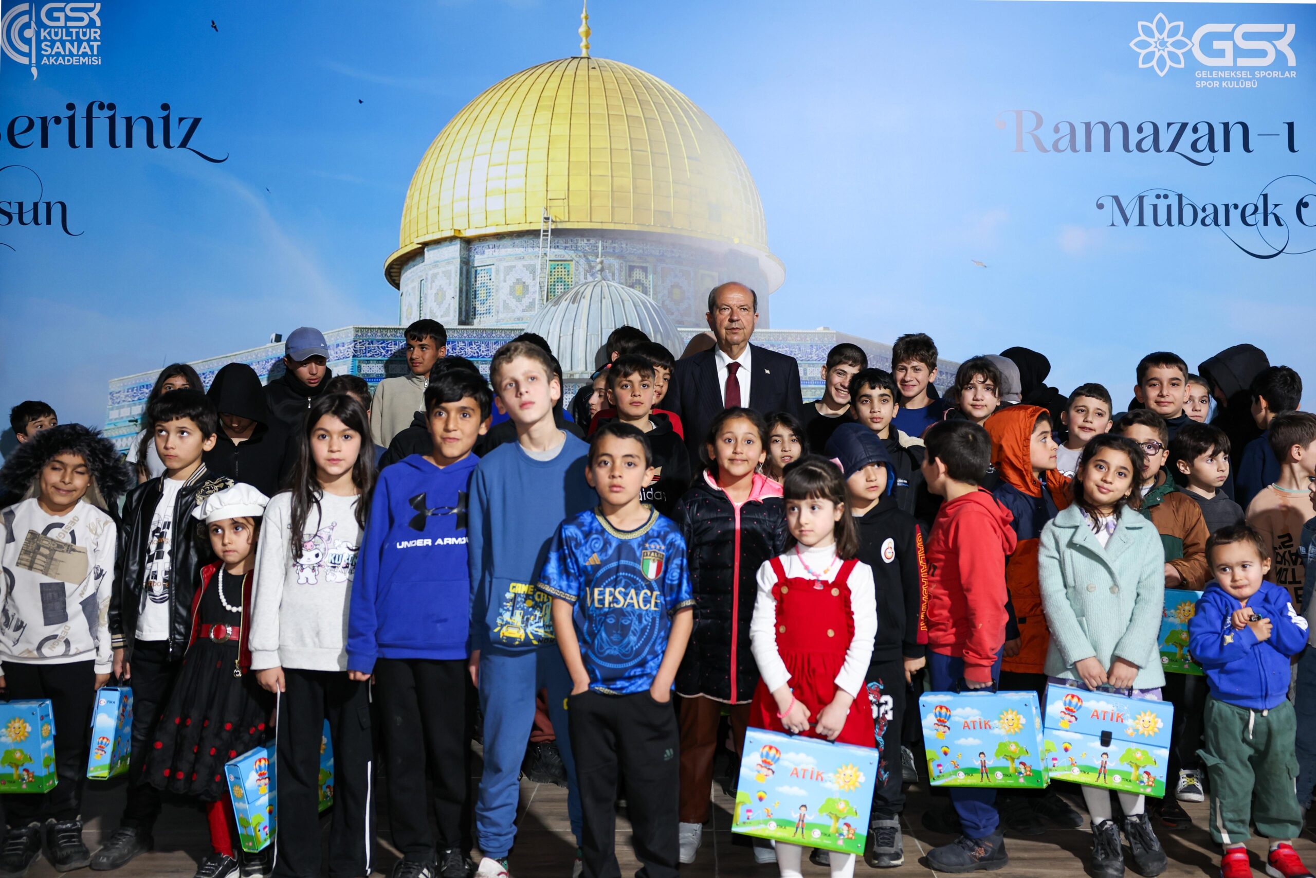 İftar yemeği sonrası Cumhurbaşkanı Tatar, TİKA tarafından himaye edilen yetim çocuklara hediyeler verdi.