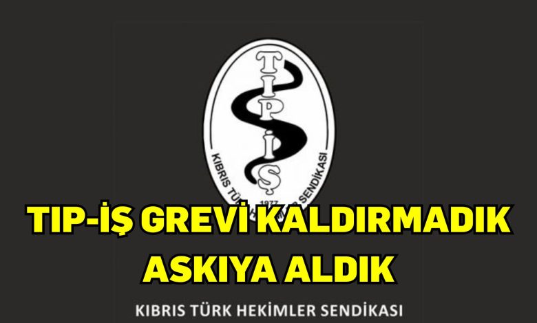 Kıbrıs Türk Hekimler Sendikası (Tıp-İş), grevi kaldırmadıklarını, halk için alan açtıklarını ve grevi askıya alma kararının bir geri adım değil, yasal çalışma talebini başlatmak, hastalara hizmetin devamını sağlamak ve çözüm sürecine fırsat tanımak amacıyla alınmış sorumlu bir sendikal karar olduğunu açıkladı.