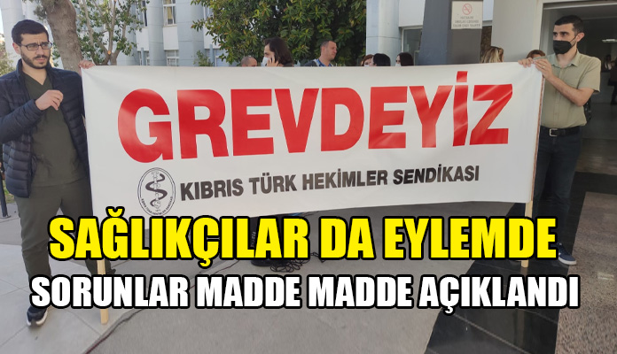 Genel grev ve eyleme katılacak olan Tıp-İş ile KTHES, sağlık alanındaki sorunlara dikkat çekmek için Lefkoşa Devlet Hastanesi’nde açıklama gerçekleştiriyor.