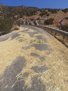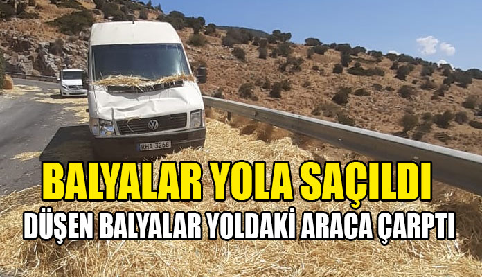 Bugün saat 11:30 sıralarında, Girne- Değirmenlik Anayolunun (Dağyolu) 6-7’nci km’leri arasında, Mustafa YELTEKİN (E-31), yönetimindeki TKZ 773 plakalı balya yüklü tır araç ile Girne istikametine doğru seyrettiği sırada sola meyilli viraja geldiği zaman üzerinde yüklü bulunan balyalardan 3 tanesi yola düşerek o esnada karşı istikametten gelmekte olan Cemali Özyakup (E-51) yönetimindeki RHA 3268 plakalı araca çarpmıştır. Olay sonrası yola saçılan balya ve samanlar Değirmenlik Belediyesine ait iş makinesi ile temizlenerek yol yeniden trafik akışına açılmıştır.