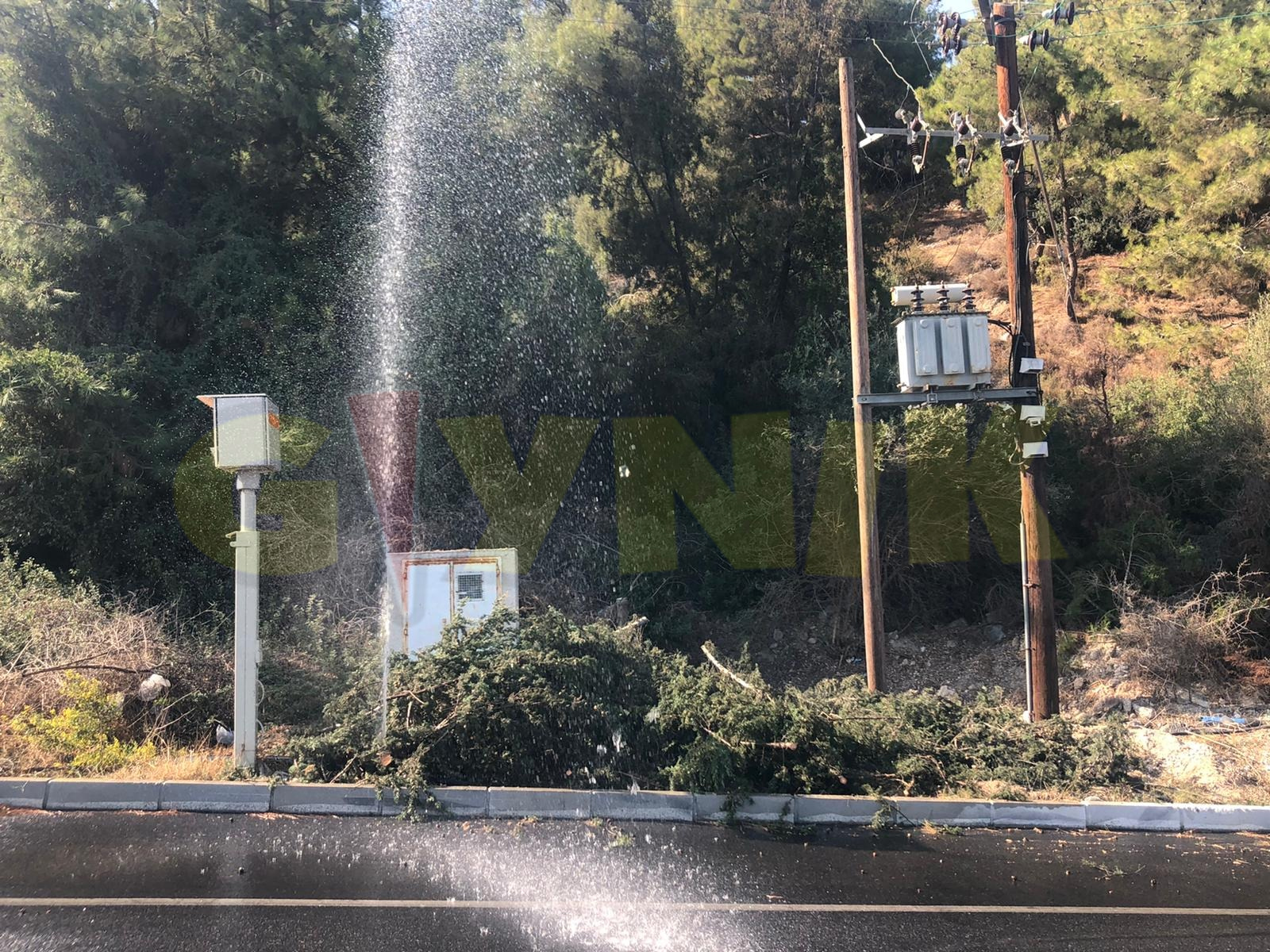 Girne Onar Village kavşağında sabah saatlerinde ağaç kesimi sırasında zarar gören su boruları patladı. Saatlerdir tamir edilemeyen su borularından kaynaklı olarak tonlarca su boşa akmaya devam ediyor. Tazyikli bir şekilde akan su arkasında bulunan elektrik trafosuna ve yüksek gerilim hatlarına ulaşması an meselesi iken suyun tazyikli akmasından kaynaklı olarak borudaki delik her dakika büyüyor.