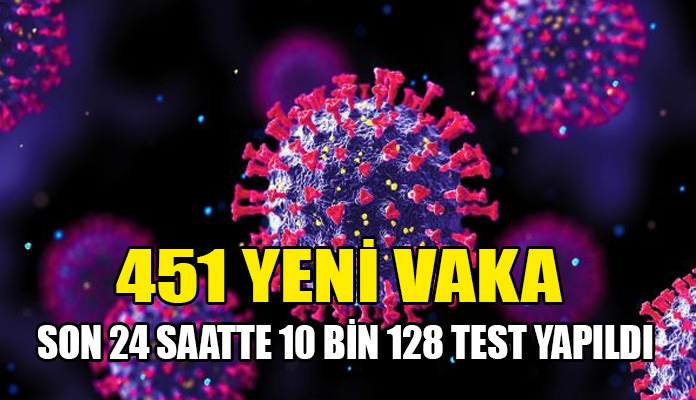 Son 24 saatte yapılan test sayısı 10.128 olup, 451 pozitif vakaya rastlanmıştır.