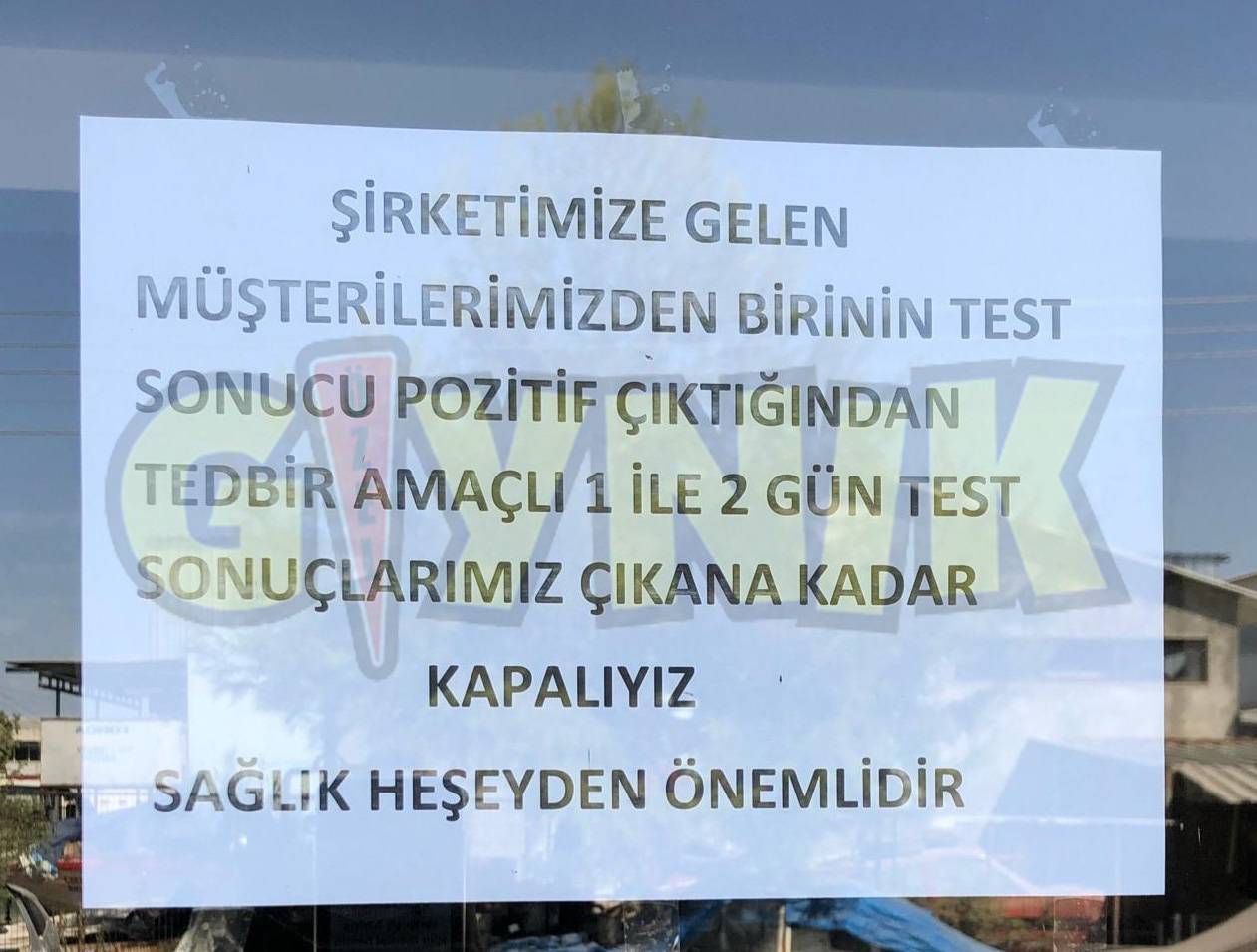 “Şirketimize gelen müşterilerimizden birinin test sonucu pozitif çıktığından tedbir amaçlı 1 ile 2 gün test sonuçlarımız çıkana kadar kapalıyız. Sağlık her şeyden önemlidir.”