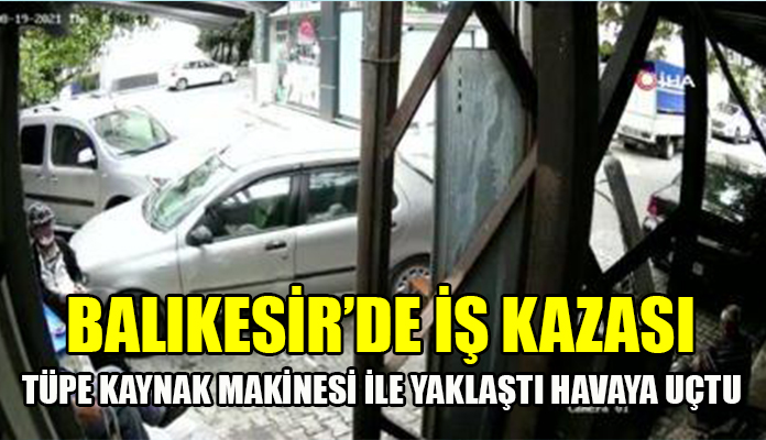 Balıkesir’de bir işyerinde elindeki kaynak makinesi ile mutfak tüpüne yaklaşan kişi patlamaya neden oldu.