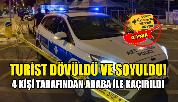 Polise, 4 kişi tarafından araba ile kaçırıldığını, götürüldüğü yerde darp edildiğini ve kişisel eşyasının ve parasının çalındığını anlatan turist başında ve elinde travmaya bağlı morluklar nedeniyle tedavi altına alındı.