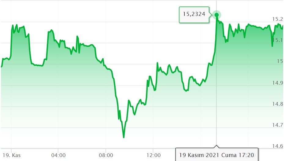 İngiliz Sterlini, 21 Ekim 2021 tarihinde 12.312 ile son bir ayın en düşük, 19 Kasım 2021 tarihinde ise 15.2626 ile son bir ayın en yüksek seviyesine ulaştı. Son kapanışta 1 İngiliz Sterlini 15.1817 TL’ye karşılık gelmekteydi.