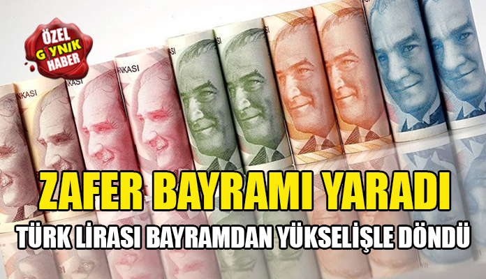 Türk Lirası, 30 Ağustos Zafer Bayramı dolayısıyla dün kapalı olan piyasaya bugün yükselişle döndü. Dolar, Euro ve sterlinde düşüş var.