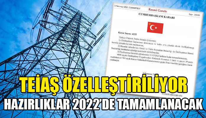 Türkiye Cumhuriyeti Resmi Gazetesi’nde bugün yayınlanan 31530 sayılı Cumhurbaşkanı Kararı’na göre Türkiye Elektrik İletim Anonim Şirketi’nin özelleştirileceği açıklandı.