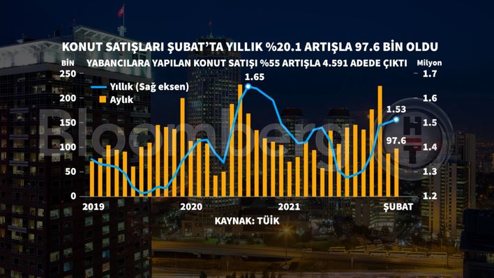 TÜİK Şubat ayına ilişkin konut satış istatistiklerini yayımladı. Satışlar bir önceki yılın aynı dönemine göre %20,1 arttı.