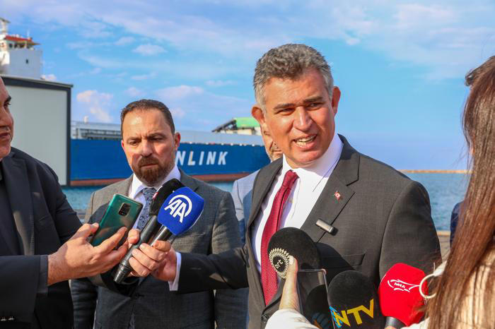 İlk arpa sevkiyatı nedeniyle limana gelen Türkiye’nin Lefkoşa Büyükelçisi Metin Feyzioğlu ile Tarım ve Doğal Kaynaklar Bakanı Hüseyin Çavuş burada açıklamalarda bulundu.