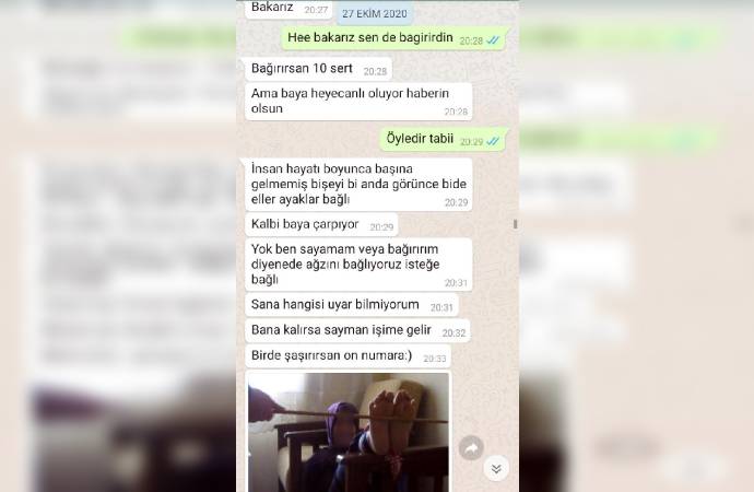 Kayseri’nin Melikgazi ilçesinde bir kargo şirketinde çalışan Erkan T., maddi durumu iyi olmayan kadınları evine çağırarak, gözlerini uyku bandı, ayaklarını kelepçe ve eşarpla bağlayıp falakaya yatırdığı görüntülerin ortaya çıkmasının ardından gözaltına alındı.