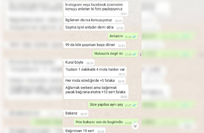 N.K., Kayseri’de yaşadığı dönemde Erkan T.’nin ailesinin, kendi evinde kiracı olduklarını ve bu nedenle tanıştıklarını söyledi. Erkan T.’nin kendisine de kadınlara yaptığı olayı teklif ettiğini anlatan N.K., “Erkan T.’nin annesi ve babası benim evimde kiracı olarak otuyorlardı. Babası bana arazisi olduğunu ve evle takas etmek istediğini söyledi. Ben kabul ettim ve Zonguldak’a döndüm. Ben toplamda 70 bin lira para verdim. Orada oğlu Erkan T. üzerinden bu işleri görüşüyorduk. Hayatım boyunca bir defa gördüm kendisini. Sonra telefondan görüşüyorduk. Ardından bana böyle bir iş yaptığını anlatarak teklif etti. Ben de böyle bir şeyin mümkün olmadığını söyledim. Ne kadar kabul etmesem de mesaj atarak ikna etmeye çalıştı. Falakanın kurallarından bahsediyordu” dedi.