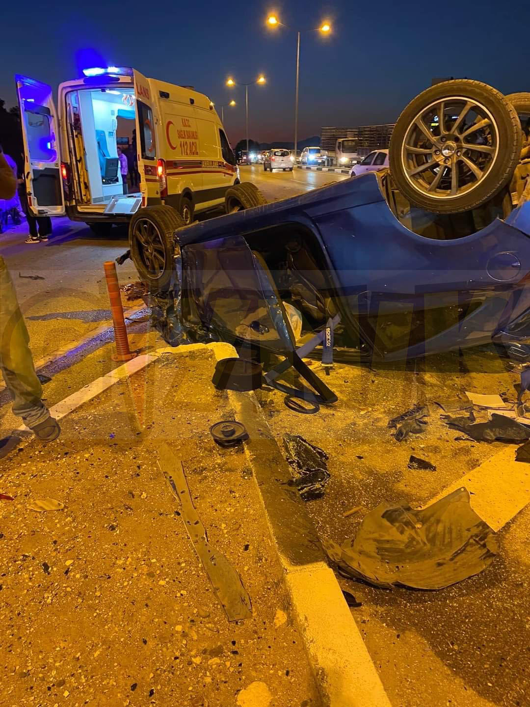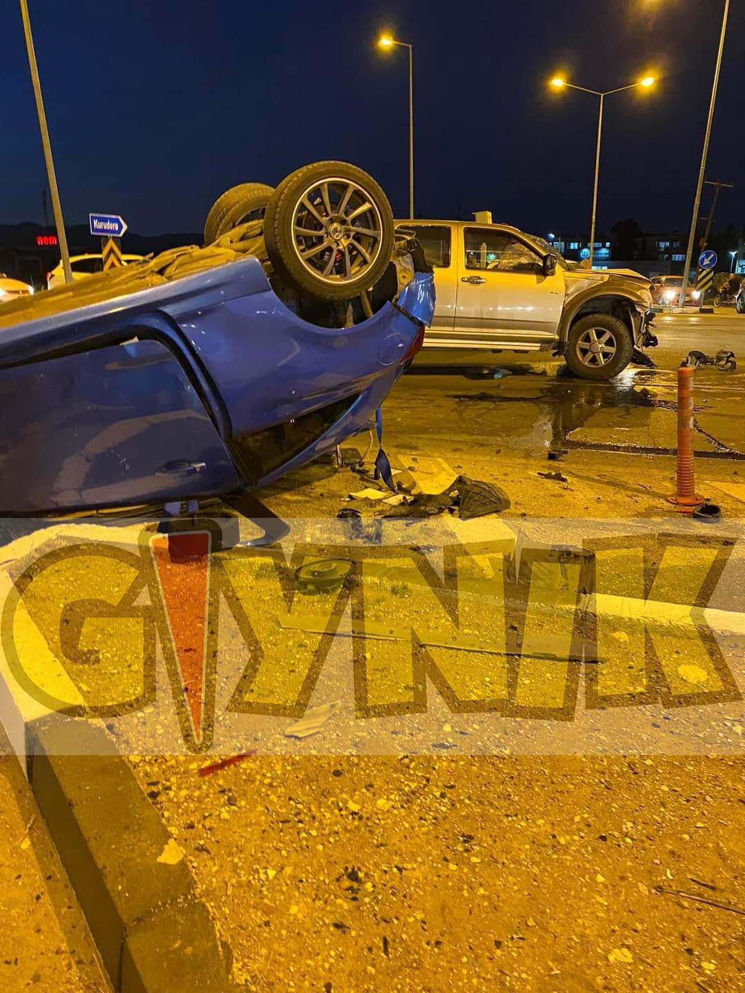 Çarpmanın etkisiyle kontrolsüz bir şekilde yoluna devam eden KZ 418 plakalı araç bordür taşlarına çarpıp yol içerisinde tavanı üzerine devrildi. Kaza sonucu yaralanan her iki araç sürücüsü ile KZ 418 plakalı araçta yolcu olarak bulunan Cahit Üçok (E-42) ve Ekrem Zeden (E-33) kaldırıldıkları Gazimağusa Devlet Hastanesinde tedavileri sürüyor. Soruşturma devam ediyor.