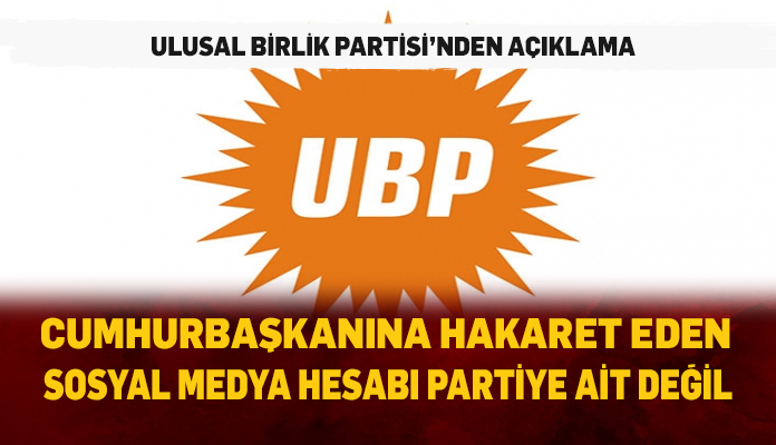 Ulusal Birlik Partisi (UBP), “Ulusal Birlik, Ulusal Birlik II” adlı instagram ve/veya sosyal medya hesabından Cumhurbaşkanı Ersin Tatar’ın şahsını ve Cumhurbaşkanlığı makamını rencide edici ve hakaret içerikli yayınlar yapan hesabın partiye ait olmadığını açıkladı.