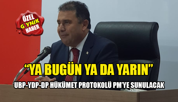 Ulusal Birlik Partisi (UBP) Parti Meclisi toplandı. Toplantı öncesi basına açıklamalarda bulunan UBP Genel Başkan Vekili Ersan Saner, toplantıda UBP-YDP-DP hükümet protokolünü UBP Parti Meclisi’ne sunacağını ifade etti. Saner, Parti Meclisi sonrasında 3 parti başkanı olarak Cumhuriyet Meclisi’ne geçeceklerini ve protokolü basın önünde imzalayacaklarını kaydetti. UBP Başkan Vekili Saner, üçlü azınlık hükümeti kabinesinin ya bugün ya da yarın Cumhurbaşkanı Ersin Tatar’a sunulacağını da ifade etti.