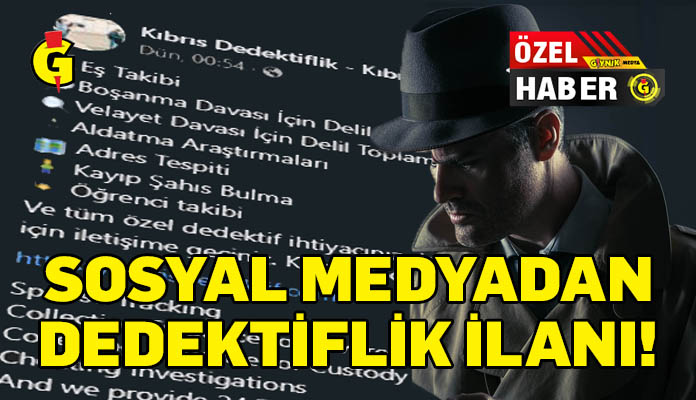 “Kıbrıs Dedektiflik” isimli sosyal medya hesabı “Profesyonel Özel Dedektiflik Hizmeti. Uzman kadromuz ile 7/24 hizmetinizdeyiz.” sloganıyla aleni bir şekilde “müşteri” arıyor.