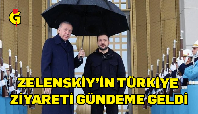 Fotoğrafta, Erdoğan’ın yağmur altında konuk Devlet Başkanı Zelenskiy’yi de altına alacak şekilde bir şemsiye tuttuğu görülüyor.