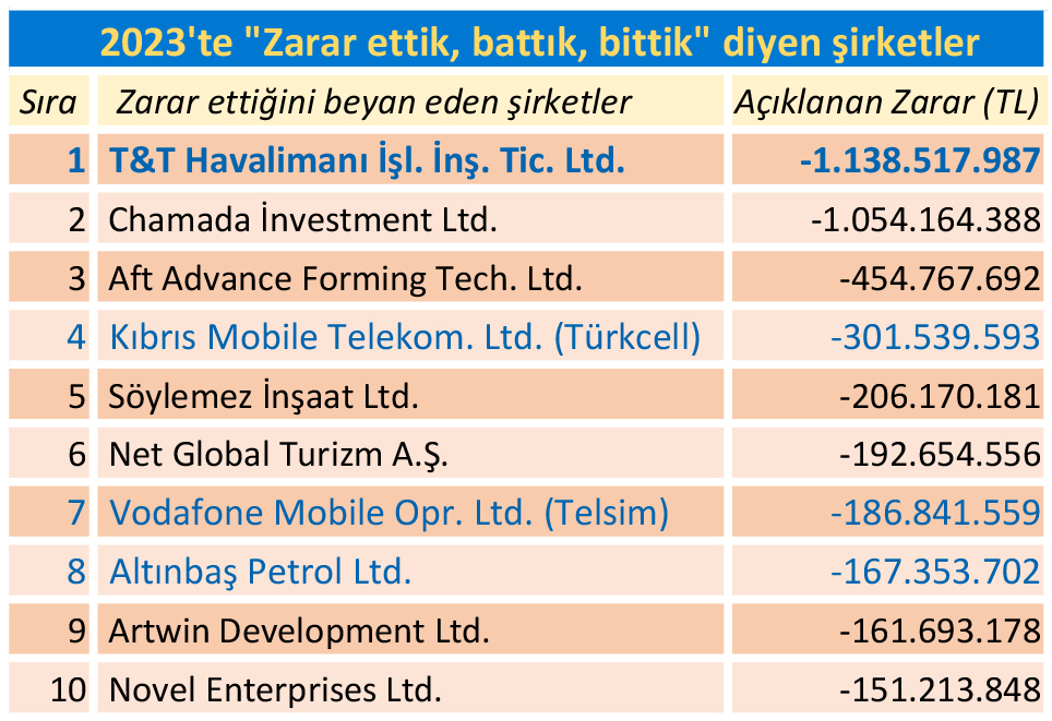 Yüz milyonlarca lira zarar eden şirketler içinde Altınbaş Petrol, Telsim ve Türkcell de var