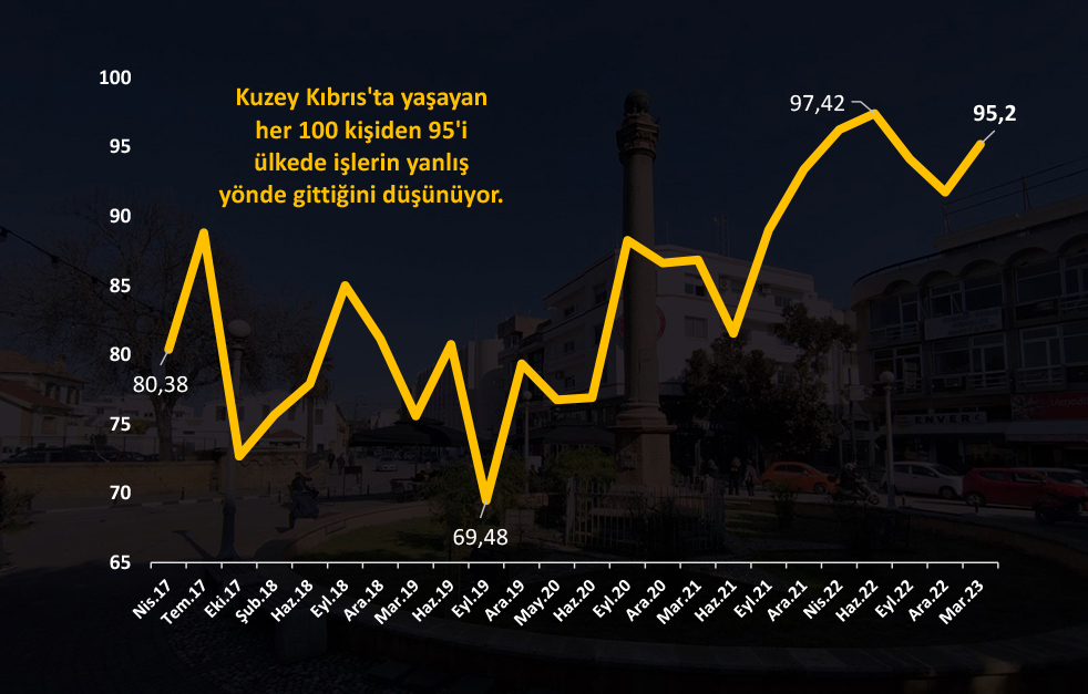 Göç Kimlik ve Hak Çalışmaları Merkezi’nin (CMIRS) Mart 2023 araştırmasına göre ülkede yaşayan her 100 kişiden 95’i (%95.2) ülkede işlerin yanlış yönde gittiğini düşünüyor. Aralık 2022 sonuçları işlerin yanlış yönde gittiğini düşünenlerin oranını %4 daha düşük (%91.74) düzeyde gösteriyordu. Araştırmayı yapan kurumun yorumuna göre bu düşüşün en önde gelen nedeni ekonomiyle ilgili. 500 kişiyle telefon anketi yöntemiyle yapılan araştırmaya katılanların sadece %3’ü ekonominin geleceği konusunda iyimser.
